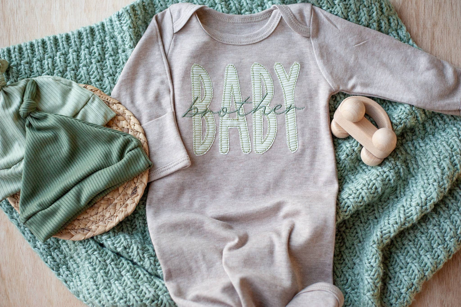 Baby Boy Outfit | Mocha Knot Gown Green Baby Brother